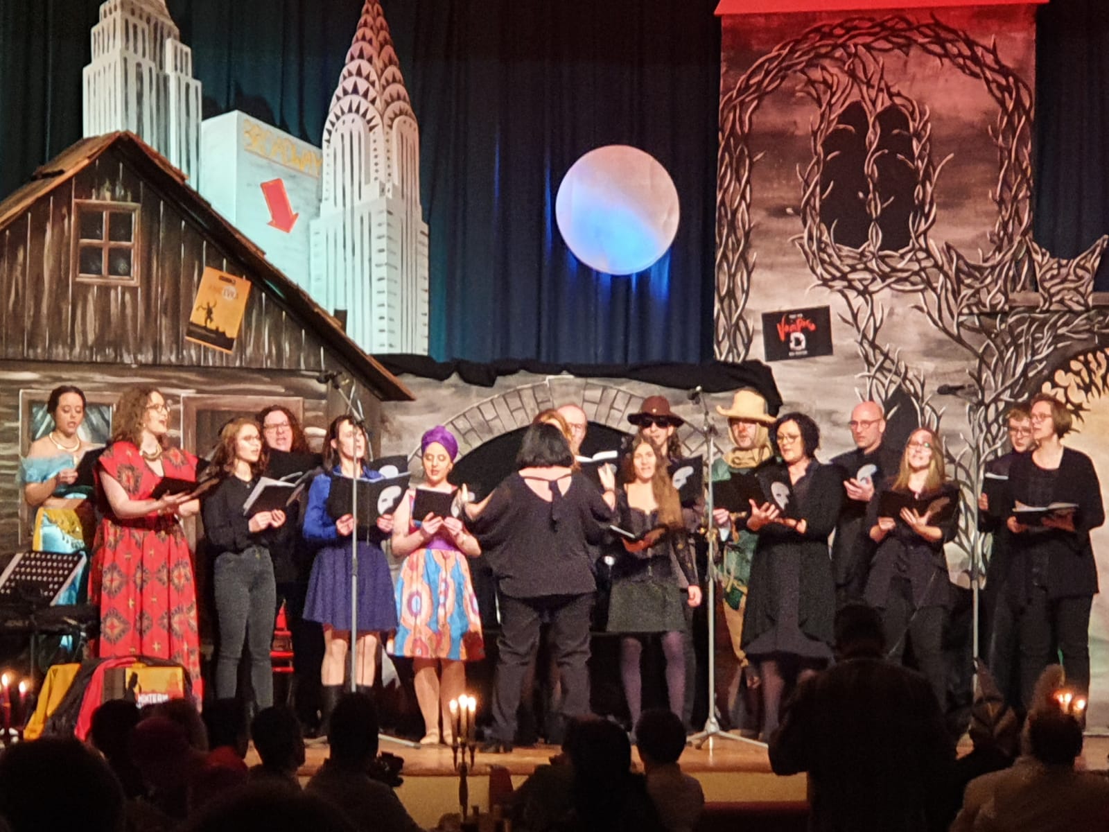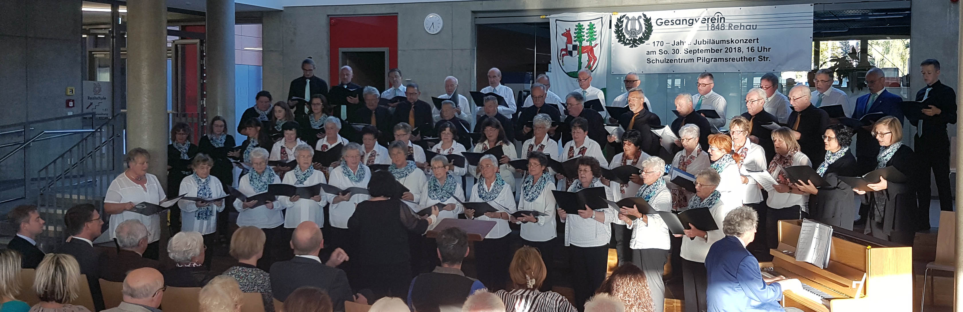 Bild: Auftritt NewVoices Gesangverein 1848 Rehau. Prunksitzung der Fastnachtsfreunde Rehau Im Januar 2020 gestalteten die NewVoices die Eröffnung der Prunksitzungen der Fastnachtsfreunde des TV Rehau. Die Veranstaltung stand unter dem Motto "Musicals" - wie gemacht für die NewVoices, die durch einen gelungenen und eindrucksvollen Auftakt bei den Faschingssitzungen überzeugten. ![]() 170-jähriges Jubiläum: Chorkonzert am 30.09.2018 Das Chorkonzert zum 170-jährigen Jubiläum fand in der Pausenhalle des Schulzentrums am 30.09.2018 um 16 Uhr statt. Das Programm wurde gestaltet von den beiden Chören des Gesangvereins 1848 Rehau unter Leitung des KMD Hermann Engel und Christel Scholz-Engel und des Gemischten Chores des Gesangvereins 1860 e.V. Regnitzlosau, der von Gruppenchorleiterin Gudrun Spatschek dirigiert wurde.