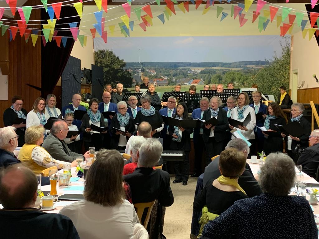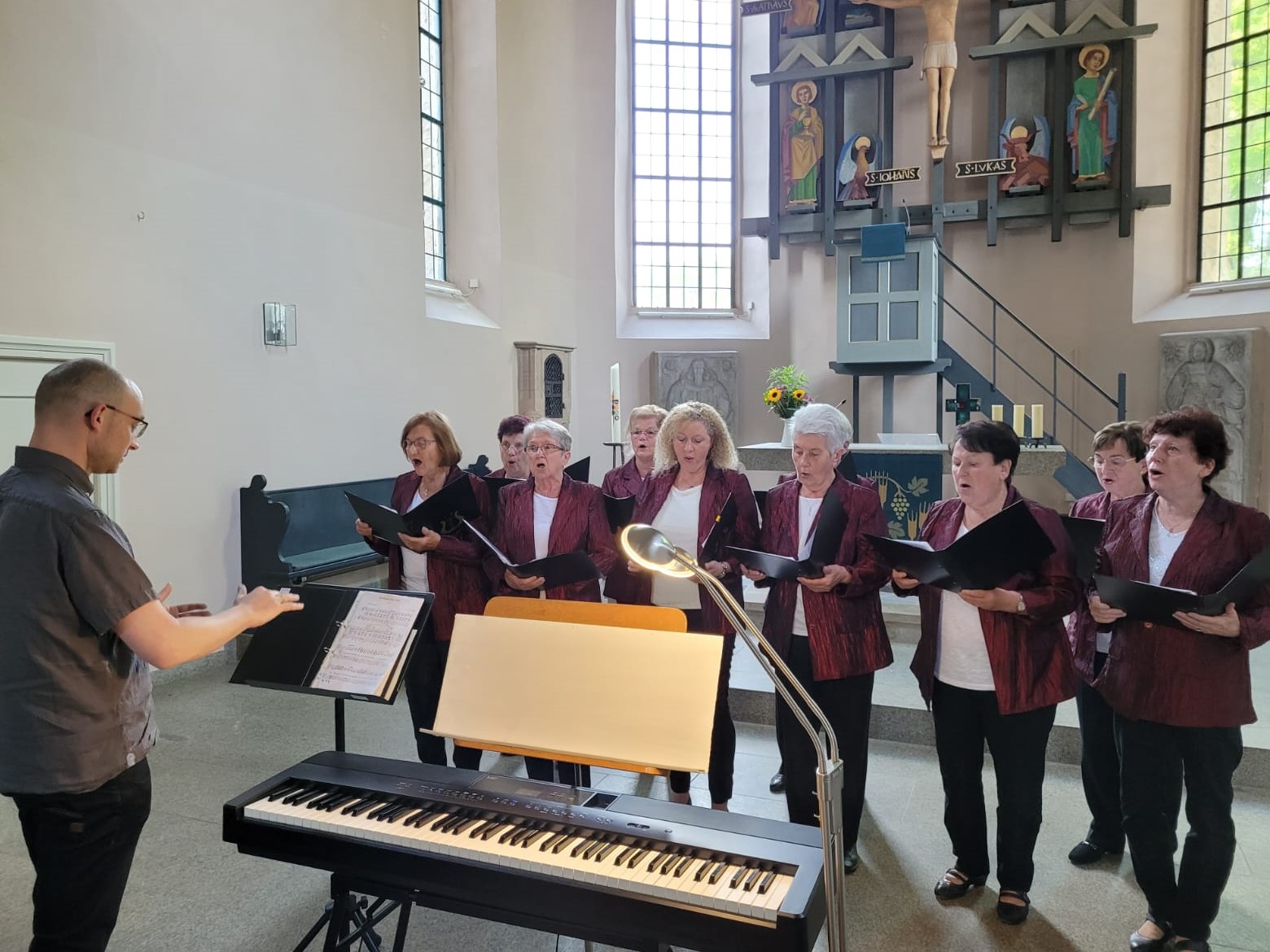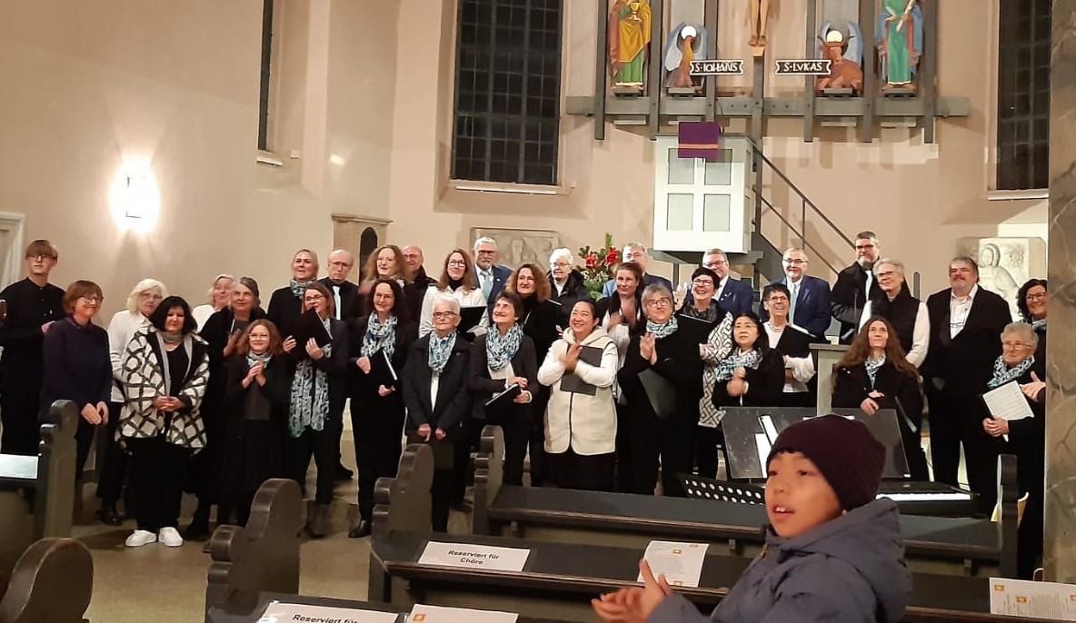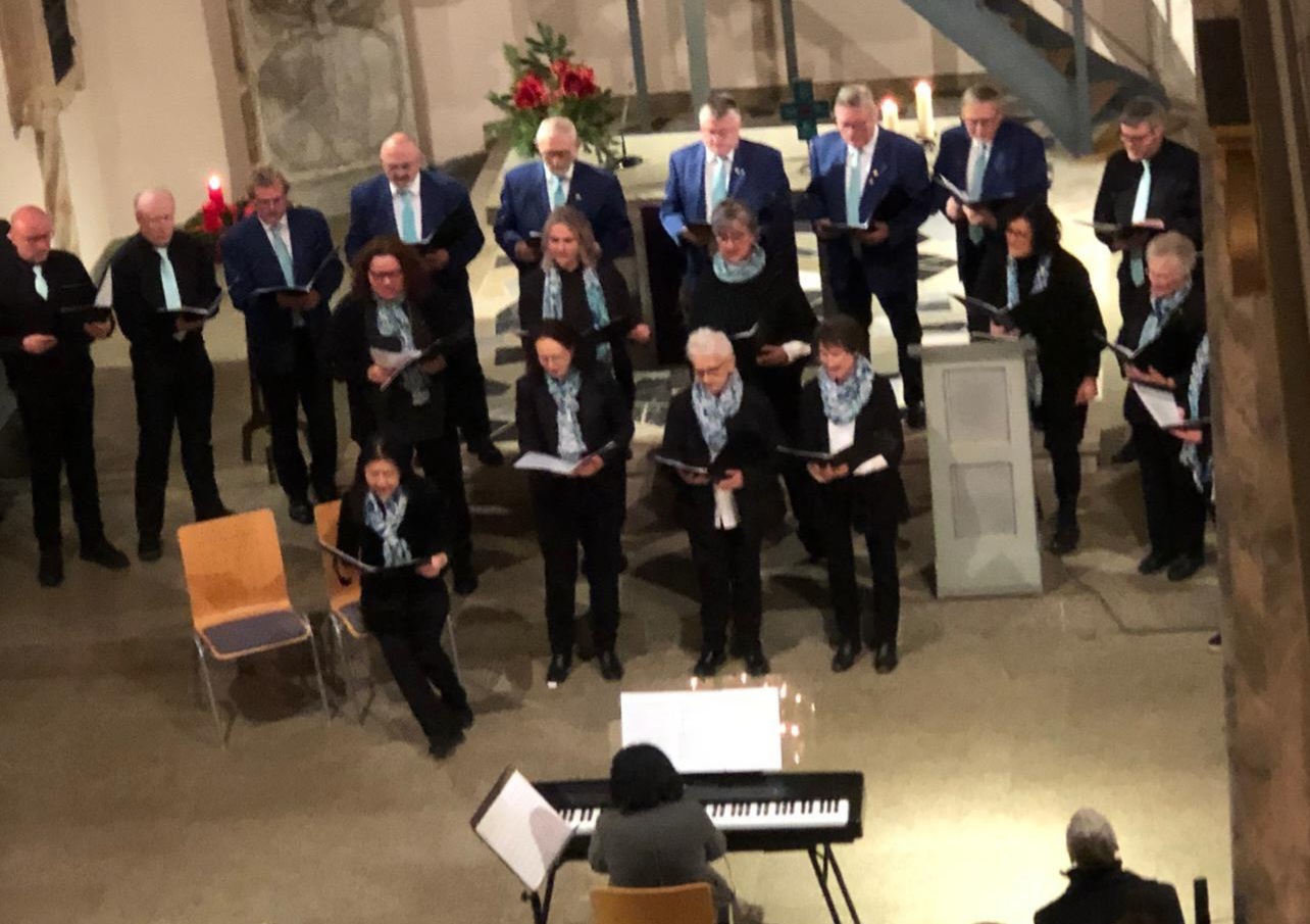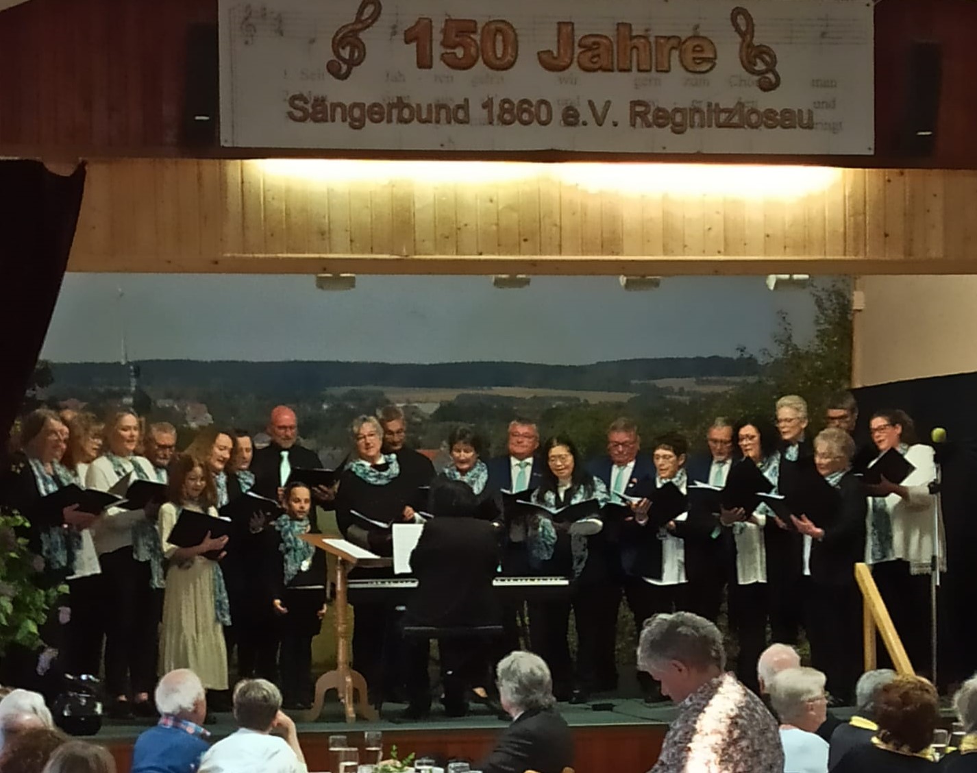 Veranstaltungen Sommerkonzert am 12.07.2025 ![]() Am 12.07.2025 lud der Gesangverein 1848 Rehau zu seinem Sommerkonzert in die Stadkirche St. Jobst ein. Die verschiedenen Ensembles des Vereins, Gemischter Chor, Männerchor und NewVoices, hatten ein buntes Programm aus traditionellen Volksliedern, Schlagern, Gospels und modernen Popsongs zusammengestellt. Dabei wirkten Sänger und Sängerinnen aus verschiedenen Altersgruppen mit. Aus den eigenen Reihen präsentierten sich René Taubennest mit seiner steirischen Harmonika, Hannah Wagner mit ihrem Saxofon und Laura Koch mit Gesang als Solisten. Die Moderation des Abends übernahm die 12-jährige Hannah Wagner, die Gesamtleitung des Konzertes lag in den bewährten Händen von Christel Scholz-Engel. Nach ca. 90 Minuten würdigten die Besucher die hervorragenden Leistungen mit langanhaltendem Applaus. ![]() ![]() ![]() Jahreshauptversammlung 11.01.2025 Im Rahmen der JHV wurde Robert Schellmann für seine 70-jährige Vereinstreue geehrt. Er war aktiver Sänger und viele Jahre Sängervorstand. Weitere Ehrung erhielten: Pia Klement für 40-jährige Mitgliedschaft Marga Lang (2. Vorsitzende) für 25 Jahre aktives singen. Brigitte Rahm legte ihr Amt als Notenwartin nach über 40 Jahren nieder. Der Gesangverein bedankte sich bei ihr für die geleistete Arbeit sehr herzlich. Konzert zum Advent Alle Jahre wieder - nahm der Gesangverein 1848 Rehau mit dem gemischten Chor und den NewVoices, in der evangelischen Stadtkirche, am Adventskonzert teil. ![]() Musikalische Ausgestaltung der Entlassfeier der Gutenberg-Mittelschule Rehau Bereits zum 2. Mal sangen die Sänger/innen der NewVoices, sowohl bei der Andacht als auch bei der anschließenden Abschlussfeier, der Gutenberg Schule Rehau. Teilnahme am Frühjahrskonzert des Sängerbundes 1860 Regnitzlosau e.V. Der Gesangverein 1848 Rehau nahm mit seinen beiden Chören, verstärkt durch Sängerinnen des ökum. Kirchenchores, am Konzert seines Patenvereines teil. Geimeinsam mit 4 weiteren Chören gestaltete man ein abwechslungsreiches Programm. Premierenerlebnis beim Weihnachtskonzert in der Stadtkirche ![]() Norbert Hofmann und Chorleiterin Christel Scholz-Engel, zwei musikalische Größen, bringen drei Rehauer Chöre (Ökumenischer Kirchenchor, Gesangverein 1848 mit gemischtem Chor und NewVoices) und das Blasorchester des Musikvereins Rehau am zweiten Weihnachtstag gemeinsam auf die Kirchenbühne. Das Ergebnis dieser Premiere ist für die vollbesetzte Stadtkirche ein noch nie dagewesenes Konzerterlebnis im Glanze des großen Kirchenfestes. "Die große Weihnachtspartita" von Alfred Bösendorfer war für alle Zuhörer ein musikalisches Erlebnis. ![]() Adventskonzert Am 10. Dezember 2023 nahm der Gesangverein mit seinen beiden Chören am Adventskonzert in der evangelischen Stadtkirche teil. Auch der ökumenische Kirchenchor und Solisten trugen zu einem stimmungsvollen Konzert bei. ![]() Vereinsausflug: Bamberg ![]() Am 2. September 2023 unternahm der Gesangverein mit Sängern und Freunden bei herrlichem Wetter einen Ausflug in die wunderschöne Stadt Bamberg. 175-jähriges Jubiläum: Chorkonzert am 18.06.2023 Zum Jubiläum veranstaltete der Gesangverein 1848 in der Stadtkirche St. Jobst am 18.06.2023 um 17 Uhr ein Konzert. Der Abend wurde gestaltet durch den Gemischten Chor zusammen mit den NewVoices. ![]() Der Gemischte Chor + NewVoices zusammen mit dem Sängerbund 1860 aus Regnitzlosau. Der Sängerbund gratulierte seinem Patenverein mit vier Liedern. ![]() Aus den eigenen Reihen sang Laura Koch mit ihrer einzigartigen Stimme das Lied "Gold von den Sternen", begleitet wurde sie dabei am Klavier von Christel Scholz-Engel. Durch das Programm und durch 175 Jahre Vereinsgeschichte führte das langjährige Mitglied Harald Ehm. Unsere Freunde aus Oelsnitz, der Frauenchor des Handwerks, ließ es sich nicht nehmen auch einen Beitrag zu diesem Konzert zu leisten. Zu den Gratulanten zählte auch eine Abordnung des Chorus Egrensis Asch. Frühjahrskonzert am 29.04.2023 in Regnitzlosau Im April nimmt der Gemischte Chor des Gesangvereins, verstärkt durch die Sänger und Sängerinnen der NewVoices, am Frühjahrskonzert des Sängerbundes 1860 Regnitzlosau e.V. teil. ![]() Adventskonzert 2022 in der Stadtkirche St. Jobst Alle Sänger und Sängerinnen sind froh, dass nach der Pandemie ein Adventskonzert stattfinden kann.