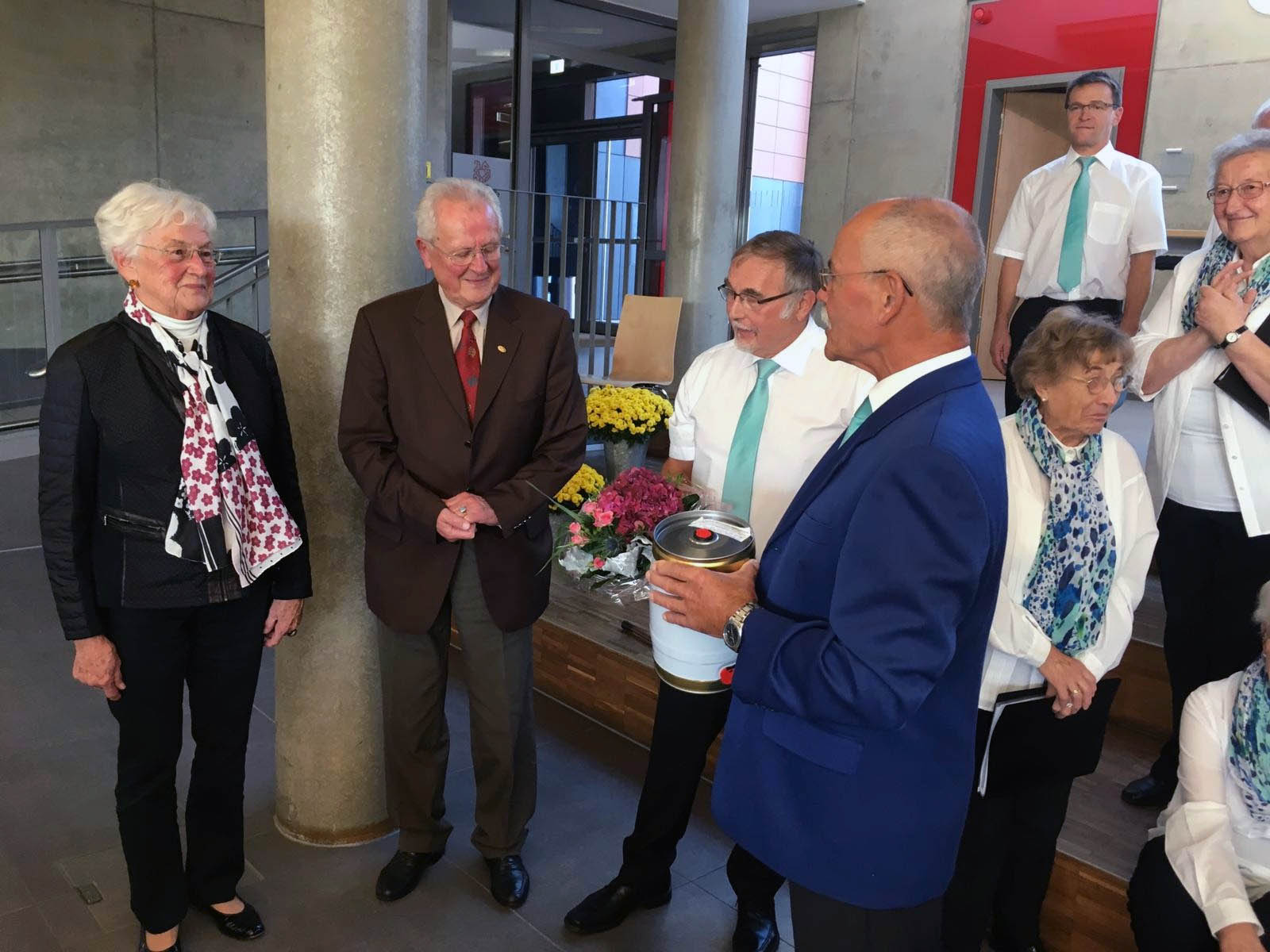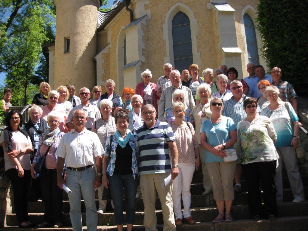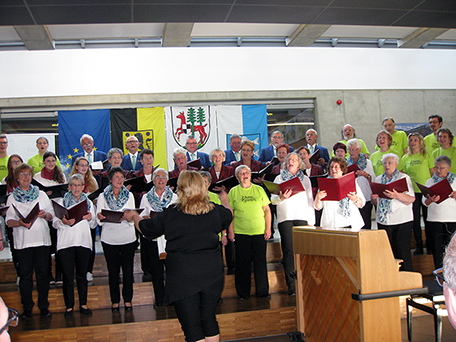 ![]() Im Rahmen der Veranstaltung wurde das langjährige Chormitglied und Ehrenvorsitzender Waldemar Ehm für seine 70-jährige Treue zum Verein und Mitgliedschaft, nicht zuletzt auch für 13 Jahre als Vorsitzender des Vereins, geehrt. Chorkonzert: Drei-Länder-Singen am 30.09.2017 Das traditionelle Drei-Länder-Singen verbindet Chöre aus Rehau (Bayern), Oelsnitz (Thüringen) und Asch (Böhmen) und findet wechselweise jedes Jahr in einem der drei Orte statt.Im Jahr 2017 war wieder Rehau an der Reihe und so fand das Singen am 30.09.2017 um 16:00 Uhr feierlich in der Pausenhalle im Schulzentrum Rehau, Pilgramsreuther Straße 32, statt. Die Veranstaltung wurde gefördert von der Euregio Egrensis. Vereinsausflug: Stadt Jena ![]() An einem wunderbar warmen Ausflugstag stiegen rund 50 Vereinsmitglieder mit Angehörigen in den Bus und machten sich auf die Fahrt ins schöne Jena in Thüringen. Neben einer interessanten Stadtrundfahrt besuchten die Sängerinnen und Sänger die katholische Pfarrkirche St. Joannes Baptist, in der wir in angenehmen kühlen Temperaturen einige Kirchenlieder sangen. Vor dieser Kirche entstand auch das Foto. Nach einem Mittagsimbiss ging die Fahrt weiter zum Zeiss-Planetarium. Nach dem gemeinsamen Abendessen in einem gemütlichen Landgasthof ging heiter und fröhlich wieder zurück nach Rehau. Chorkonzert: Luther-Stuhl zum Luther-Jahr ![]() Zur Sammlung der Luther-Stühle leistet auch der Gesangverein seinen Beitrag. Zur feierlichen Übergabe des vom Gesangverein 1848 Rehau entworfenen Stuhls veranstaltet der Chor ein großes Chorkonzert. zur Darbietung kamen zahlreiche mit Martin Luther in Verbindung stehende Lieder. Das von der Kirchengemeinde und der Stadt Rehau ins Leben gerufene Projekt hat den Sinn, die 95 Thesen der Reformation in Form von 95 Stühlen plus einem zur Geltung und unter die Leute zu bringen.